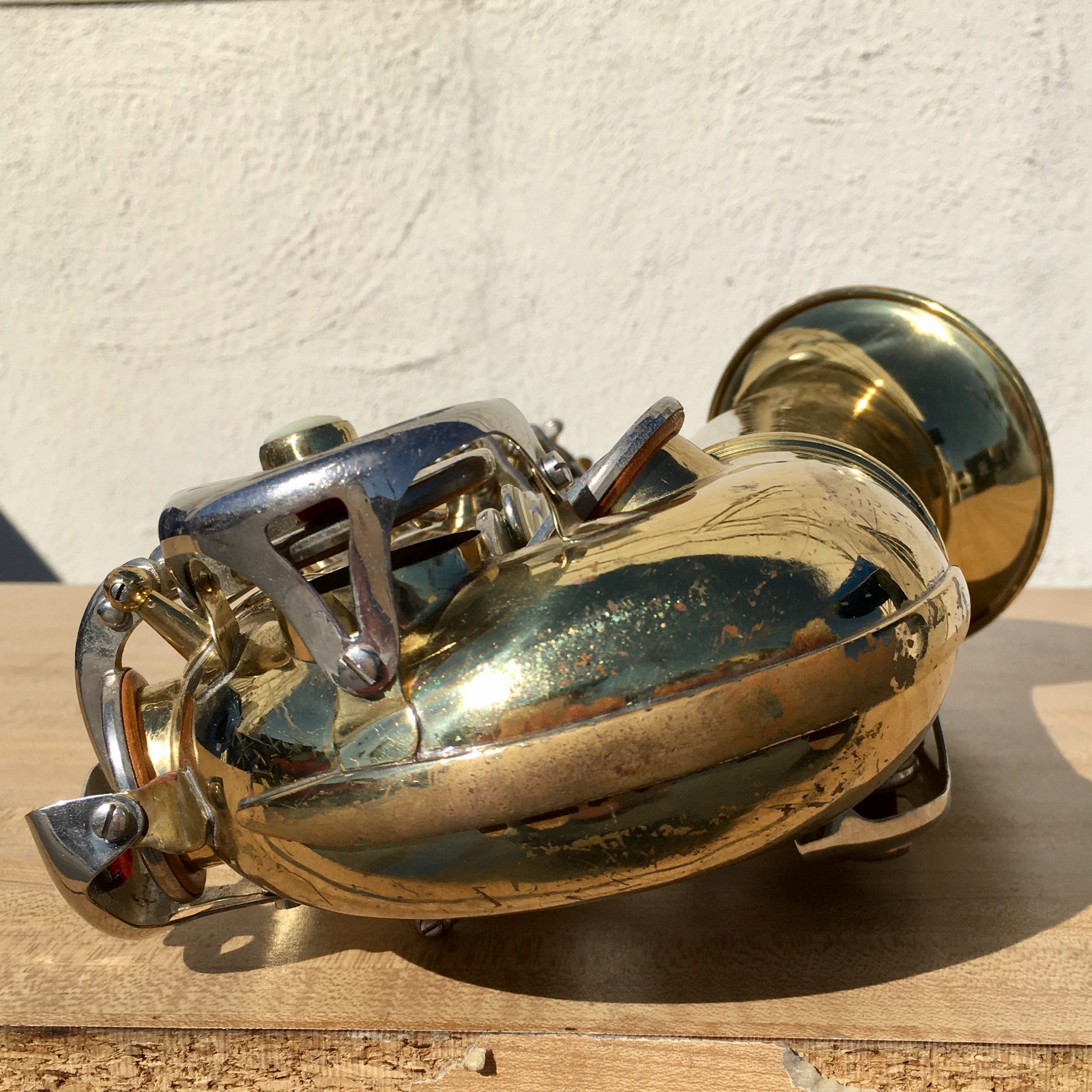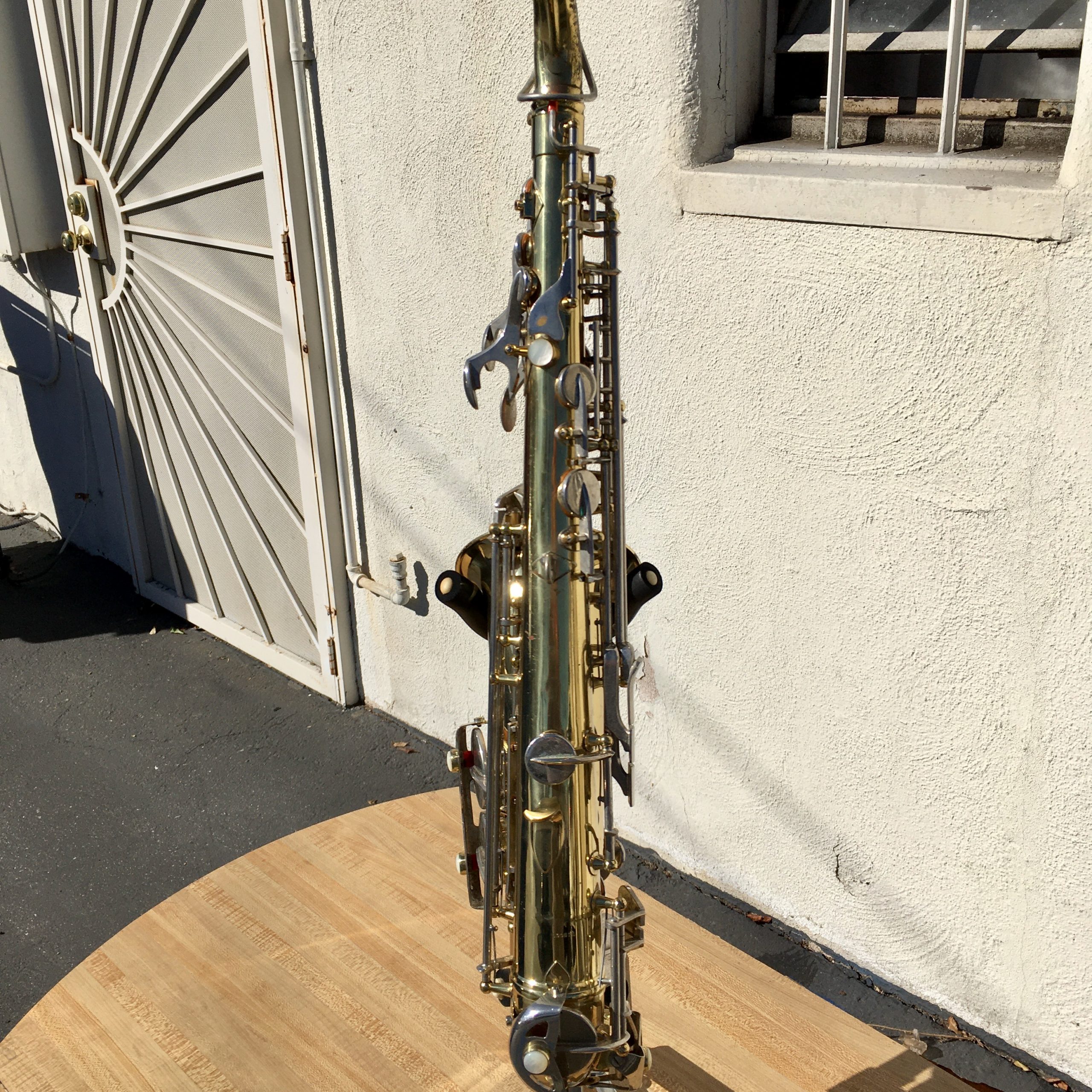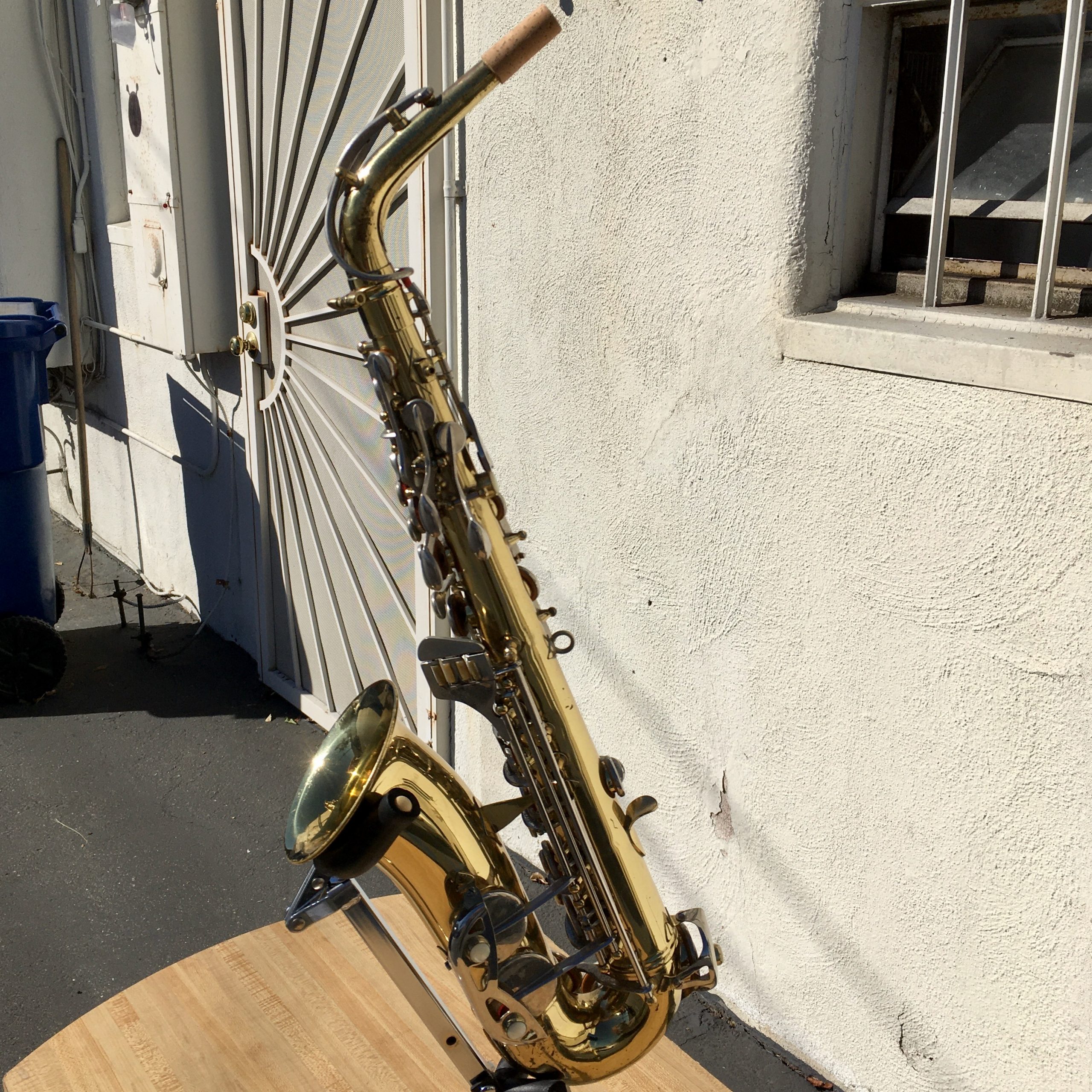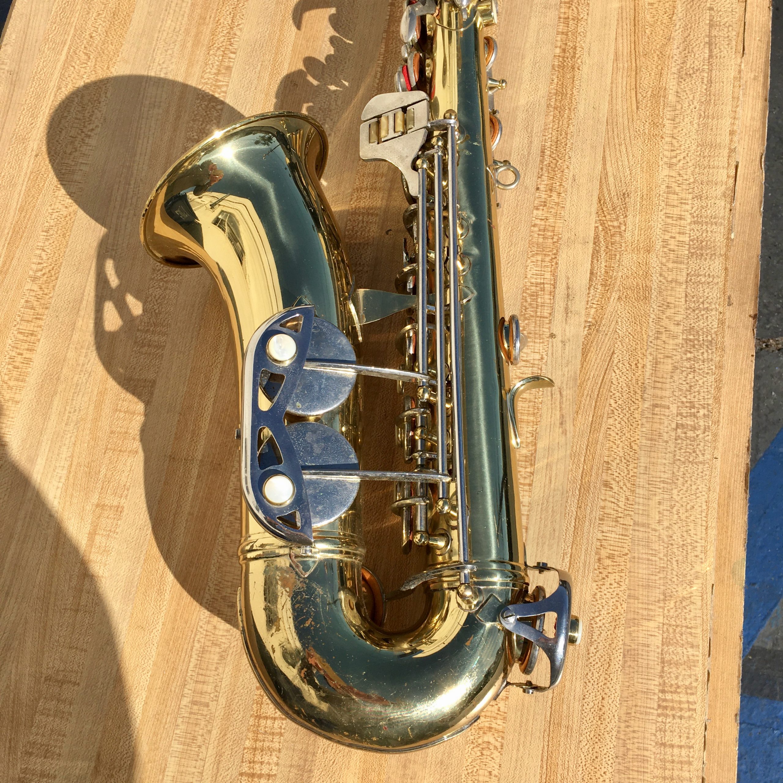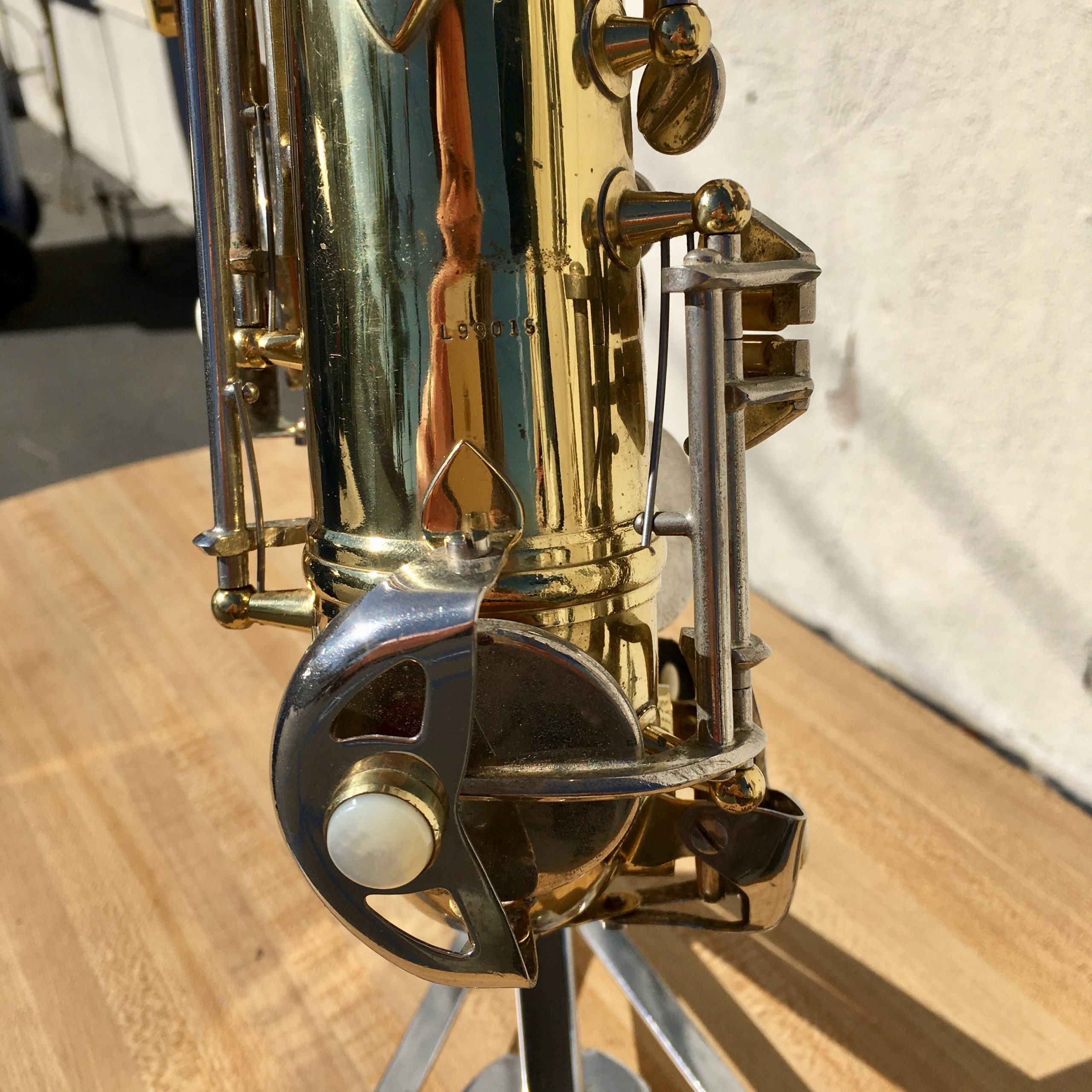 Based on the serial number, this Conn Shooting Star was manufactured in 1968. Despite its age, this sax is in good playing condition. There are some minor blemishes in the lacquer and dings on the body. The horn was recently serviced to ensure the keywork, pads, and mechanisms are all in working order. The saxophone has a strong, but balanced sound. The sax also comes with its original carrying case, which is in good condition for its age.