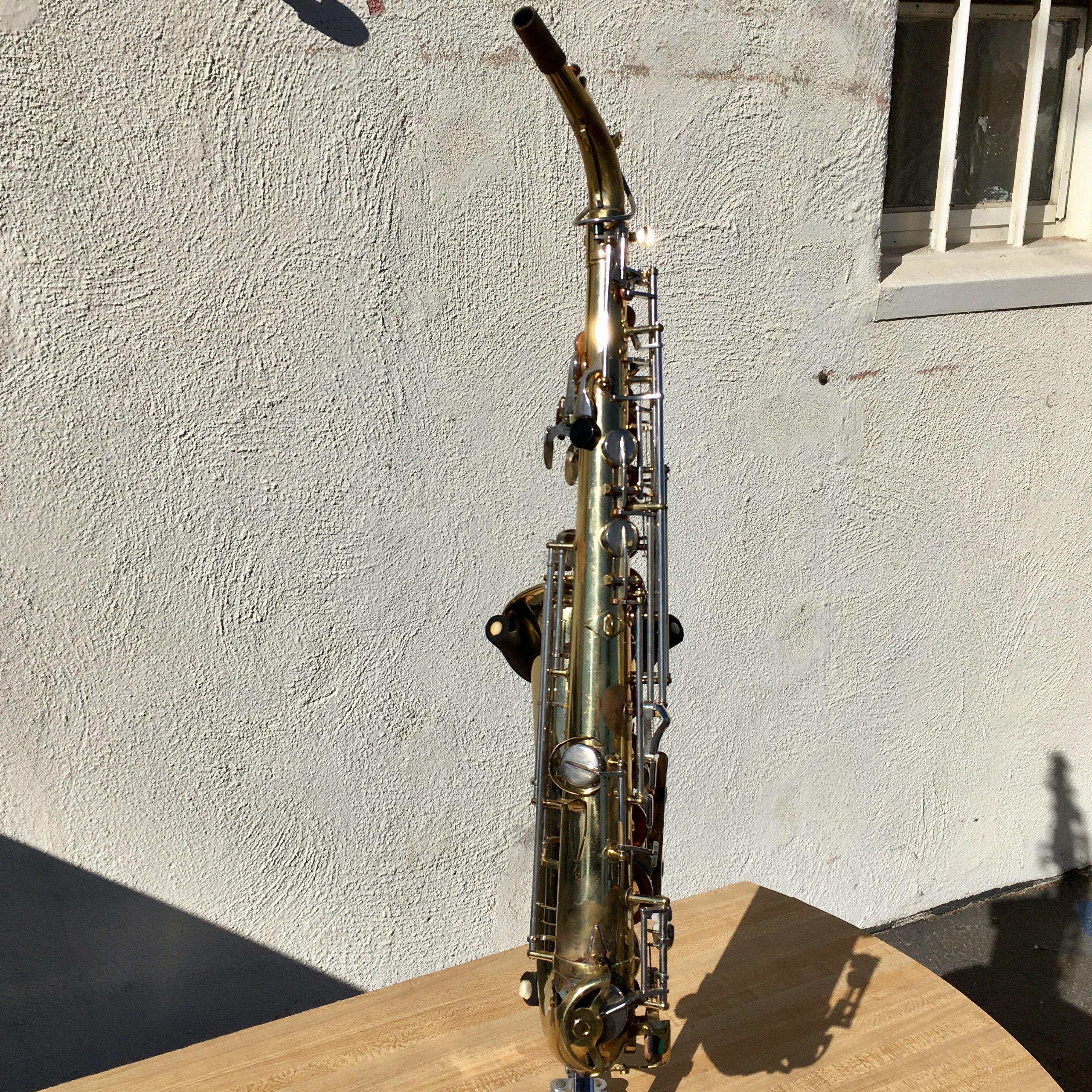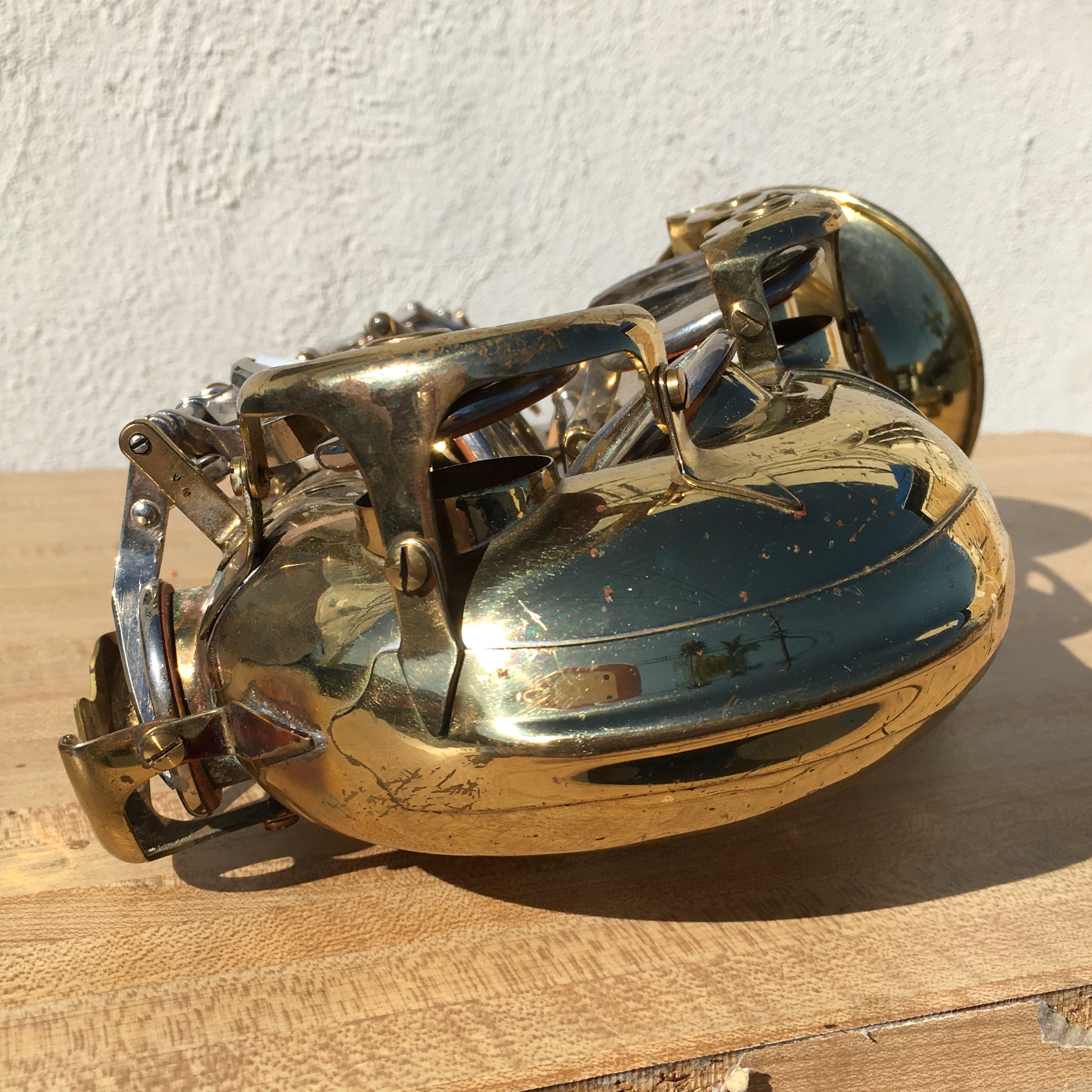 At a glance, this Olds Parisian Ambassador looks and feels different than a modern saxophone. Started in the early 1900s, the Olds instrument company was a staple of the American instrument market for years. During World War II, Olds made instruments for the U.S. military, along with other products for the war effort. That’s where many musicians picked up an Olds instrument for the first time. In the years following the war, Olds released the Parisian model. This saxophone is still highly sought after to this day for its impeccable tone and build quality. The Parisian Ambassador is a refined, mid-century version of the classic Parisian.