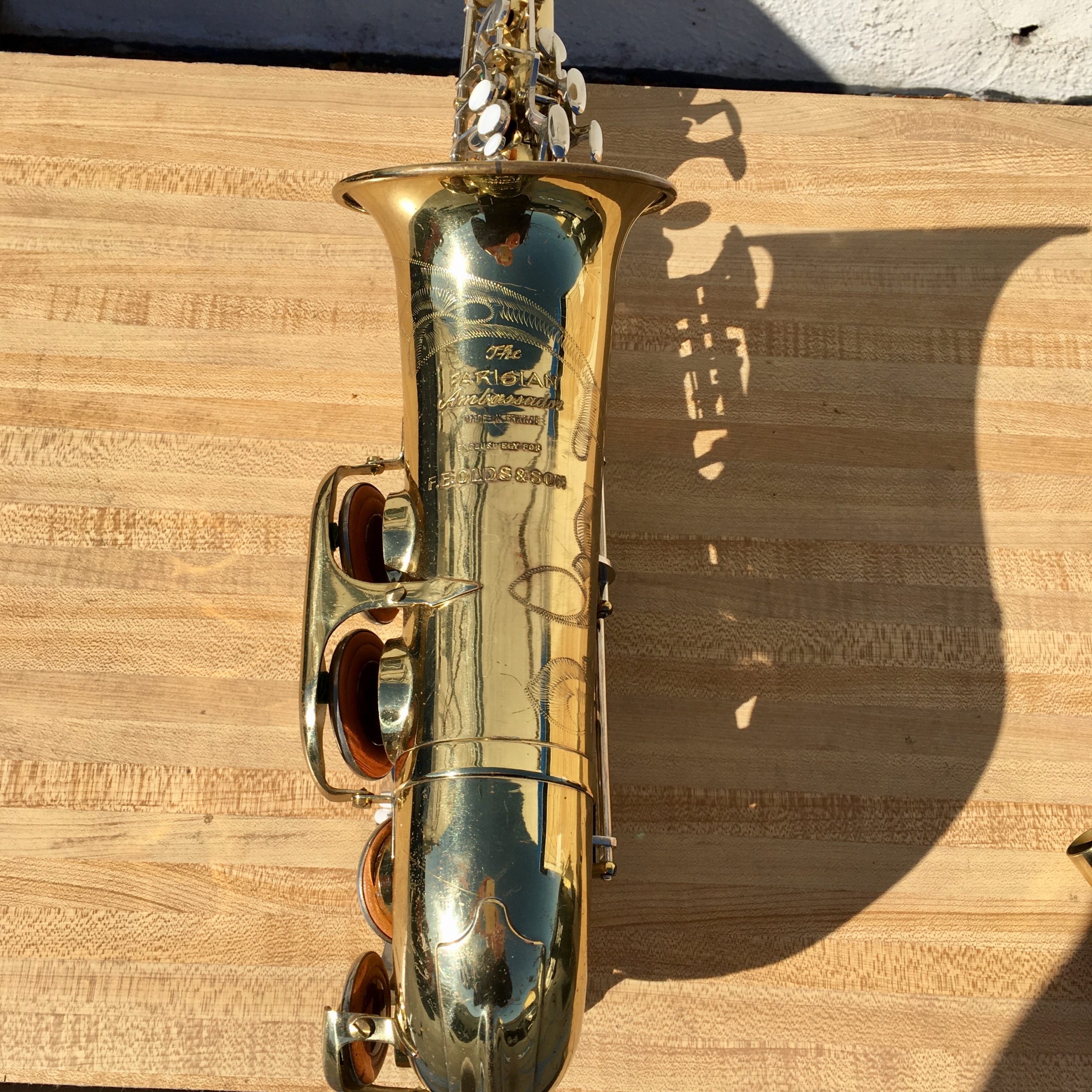 This saxophone is in working order, and ready for someone to pick it up and start playing. Contact us for more information about this Olds Parisian Ambassador alto sax.